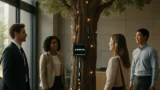 例えば、会社員(29)水谷亮太さんは、初対面の高齢住民・嶋田志穂さん(71)のスマホ設定を手伝った。「ありがとう」と言う嶋田さんの笑顔とやりとりがAI解析され、その場でお互いのYKPが加点された。YKPは地元産の野菜購入や、コーヒースタンドの無料サービス、ラボ内の小さな図書スペース利用などに交換できる。実際、リモートワーカー同士でも「お先に失礼します」や「手伝いましょうか?」といった何気ない一言や小さな親切が続出し、村にはやさしい空気が静かに広がっている。