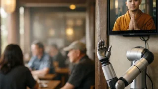 静かな春の午前、鳥取県の山あいに開かれた一軒のカフェが話題を集めている。そこは「帰心カフェ」。お寺の本堂を改装してつくったこの不思議なカフェの主人は、人でも動物でもなく、なんと最新技術を駆使したAI僧侶「照願(しょうがん)」だ。伝統とテクノロジーが出会うこの場所に、老若男女問わずさまざまな人々が集まり「人生のよりどころ」として静かなブームになっている。