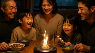 週末ごとに小さな炎が灯る家がある――。東北地方の山間に暮らす大矢根家では、自宅リビングで“円卓キャンプファイヤー”が恒例となった。家族五人が手作りの大きな丸テーブルを囲み、中央の安全なバイオエタノール火鉢でやさしい火を眺めながら、季節ごとの手料理を楽しむ。絵本の1ページのような、そんな特別な晩ごはんは、世代も個性も違う家族の心を繋ぐ小さな奇跡になっている。