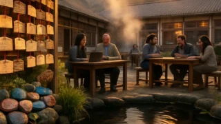 山間の古湯町・水無里で、心温まるワーケーションの新しい形が生まれている。きっかけは、温泉宿「虹乃湯」脇の池に現れた一匹の変わり鯉と、世界中から集まったテレワーカーたちの偶然の出会いだった。IT企業勤務の大野陽菜(33)は「初めて出張で訪れてから帰りたくなくなりました」と笑う。