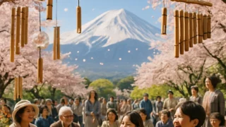 青空が広がる春の朝、静岡県富士山麓の小さな集落「四季見原」で、住民と自然が共演する特別なお花見イベントが開かれた。なんと、季節の花や月、川のせせらぎといった自然現象が、“音楽”として聴こえるハーモニーチャイムとなり、広場を訪れた人々に一生忘れられないひとときをプレゼントしたという。