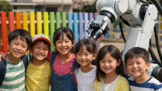 ある春の朝、青森県東津軽郡の小さな小学校で、校庭沿いの古びたフェンスが鮮やかな虹色へと生まれ変わった。その立役者は、地元企業の協力でやってきた最先端のスマートロボットアームと、元気いっぱいの児童たち。AI技術と子どもたちの創造力が出会い、町の人々の心を温める出来事が生まれた。